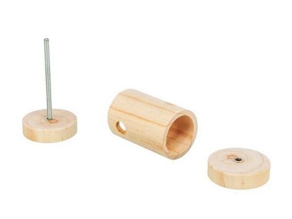 Váleček na pamlsky z neošetřeného přírodního dřeva se šroubovacím víčkem, lze naplnit malými pamlsky nebo senem či zeleninou, poskytuje hlodavcům zábavu, podporuje přirozené chování a pomáhá s obrušováním hlodáků