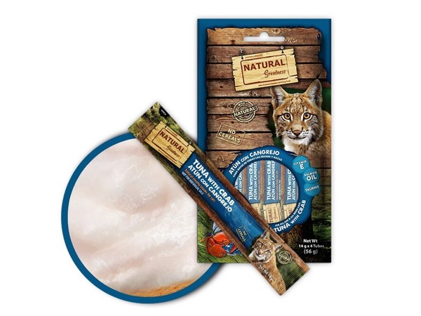Chutný krém vyrobený z prvotřídního masa tuňáka a kraba, obohacený o taurin, vitamín E a lososový olej, které pomáhají udržovat zdravou kůži a hedvábnou, lesklou srst, zdravý pamlsek pro všechny potkaní i kočičí gurmány
