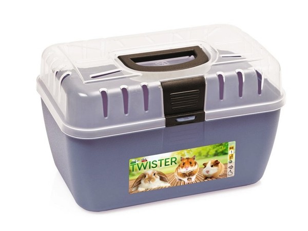 Kvalitní plastová kufříková přepravka v pastelových barvách pro potkany a malé hlodavce, vrchní strana je z průhledného plastu